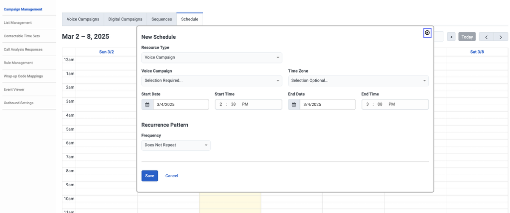 Outbound > Campagne de messagerie > Modifier l'horaire |