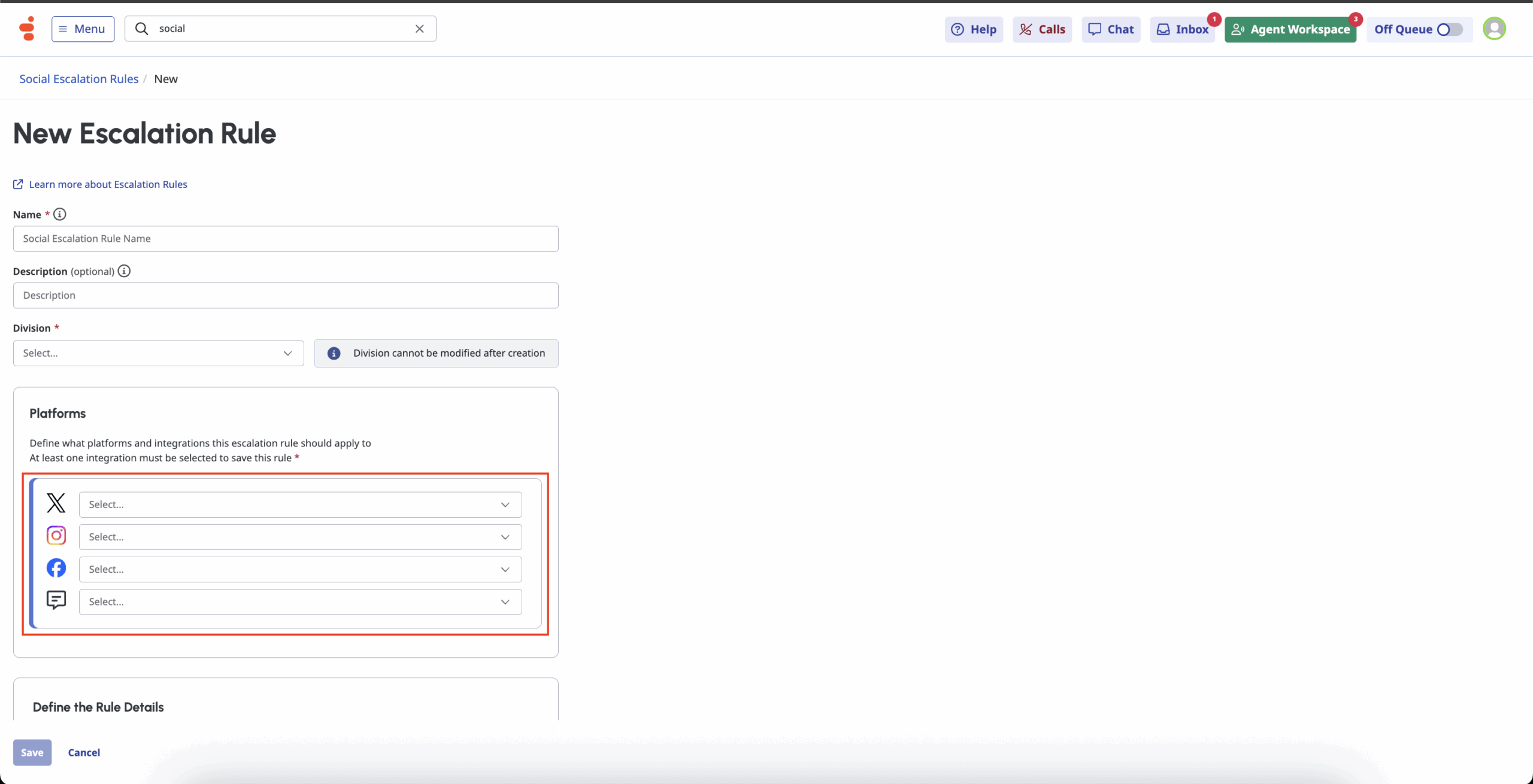 - Temps de réponse plus rapides - Les règles d'escalade sociale dirigent automatiquement les avis ou les commentaires pertinents vers les bonnes files d'attente ou les bonnes équipes, réduisant ainsi le triage manuel.