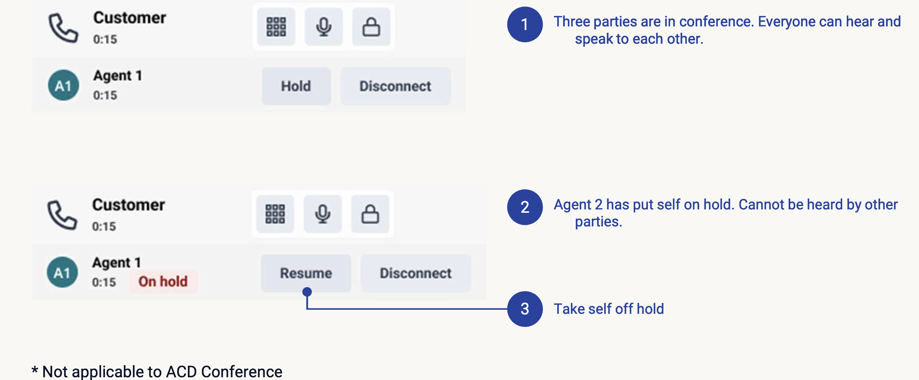 En outre, l'expérience actualisée des consultations vocales comprendra des détails plus clairs, par exemple le nom de l'agent consultant, la durée de la consultation et le nom de la personne mise en attente, ainsi que de nouvelles commandes d'appel dédiées. Ce changement améliore la résolution au premier contact, fait un meilleur usage des experts en la matière et donne aux agents plus de flexibilité dans la gestion de leur charge de travail, tout en réduisant l'effort pour les clients qui ne doivent plus se répéter. Pour plus d'informations visuelles, voir les sections suivantes.