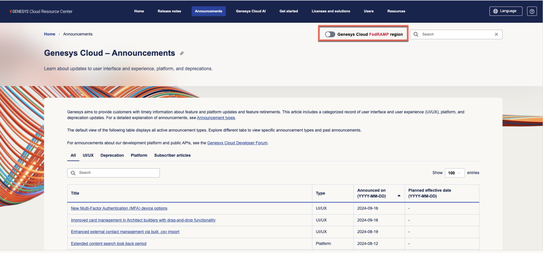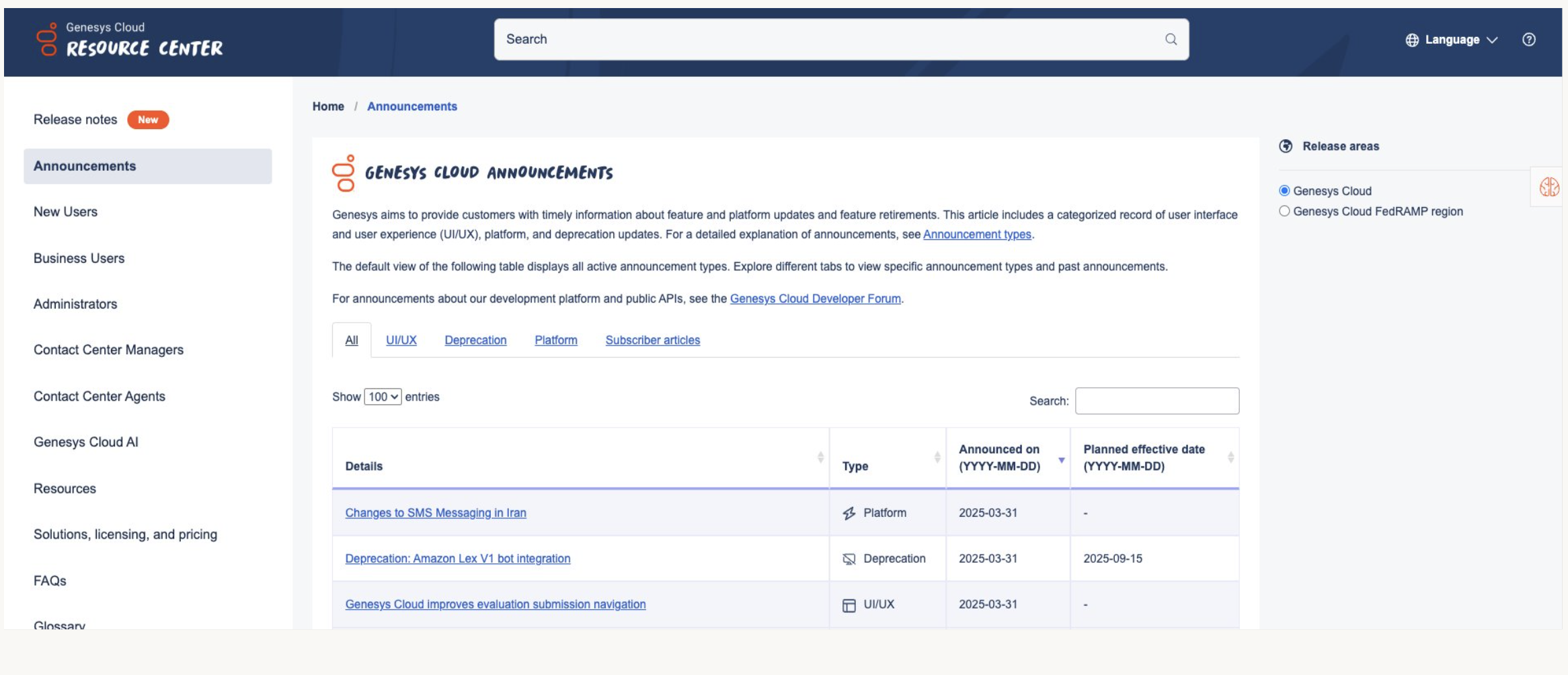 Dans une prochaine version, le centre de ressources Genesys Cloud sera déplacé vers help.genesys.cloud. Cette mise à jour aligne le centre de ressources sur la marque Genesys Cloud, améliore la navigation sur le site, la convivialité des notes de version et introduit une meilleure prise en charge de la localisation.