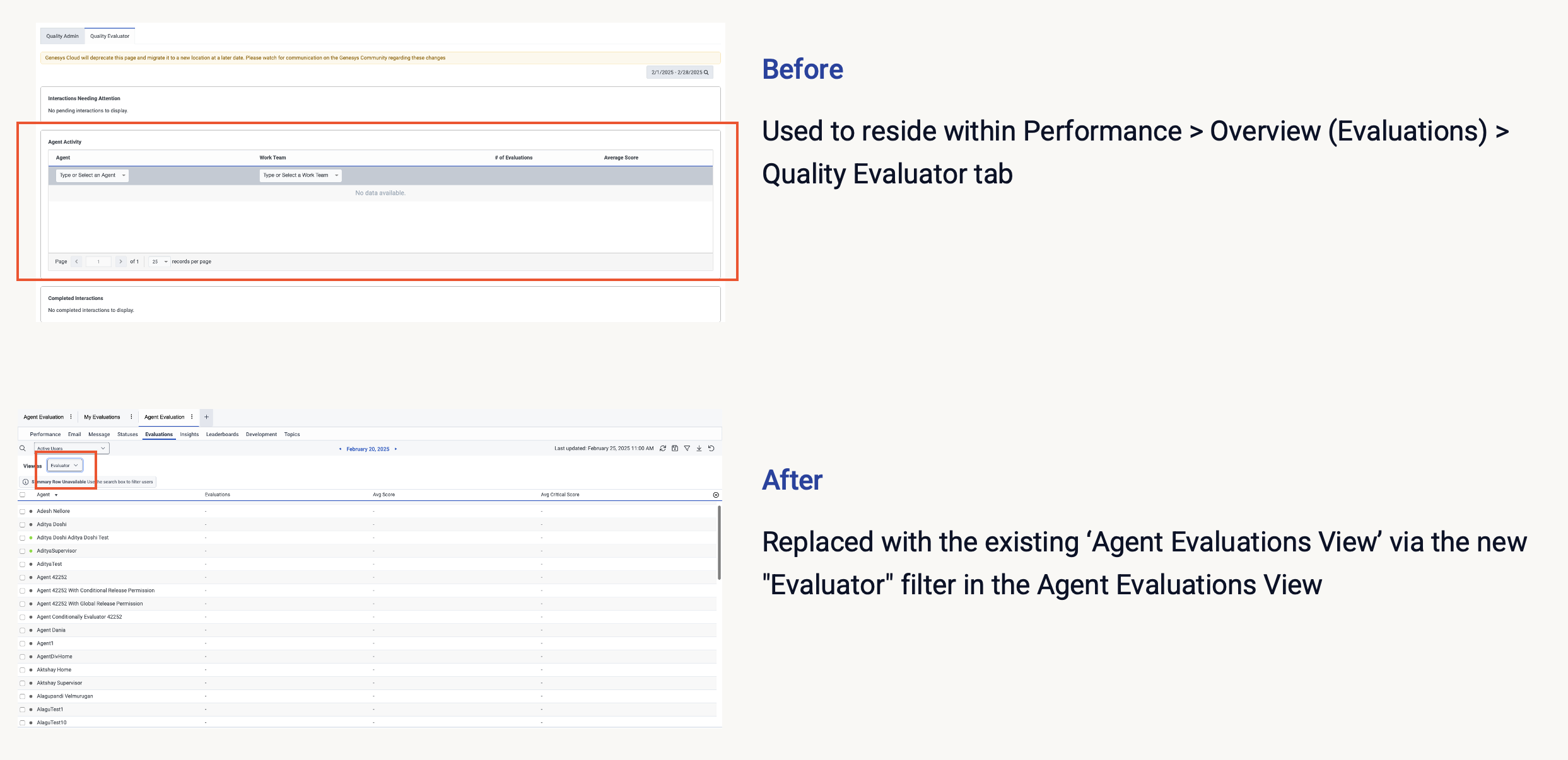 Genesys Cloud supprime la page "Overview (Evaluations)" sous "Performance".