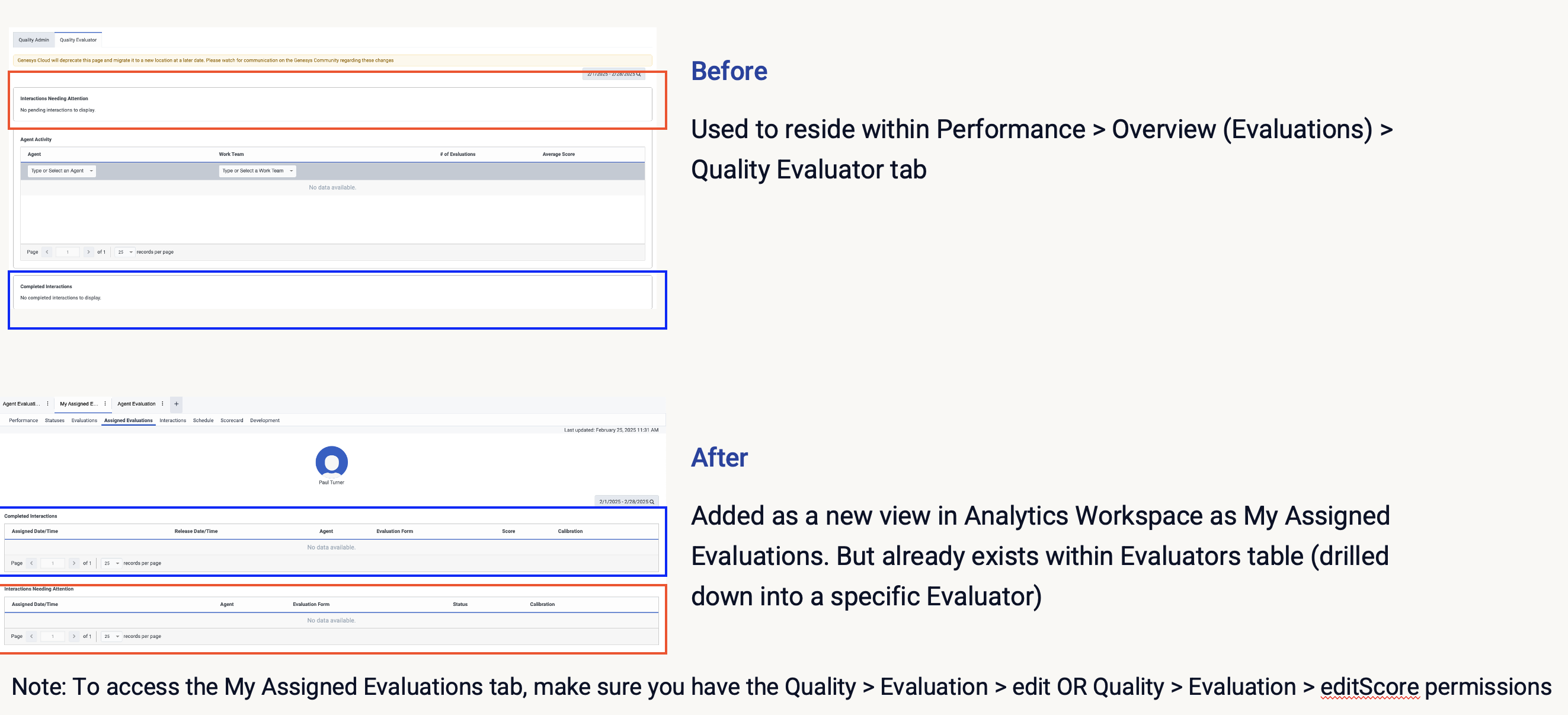 | Évaluations terminées (évaluateur de qualité) | Espace de travail analytique > Onglet Mes évaluations assignées (Nouveau) |