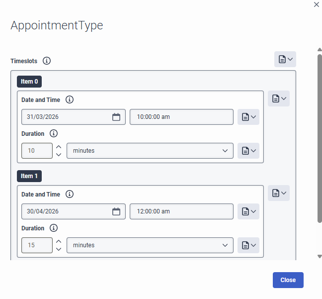 - Ajoutez autant de créneaux horaires que nécessaire. La limite maximale est de 50 emplacements par collection.