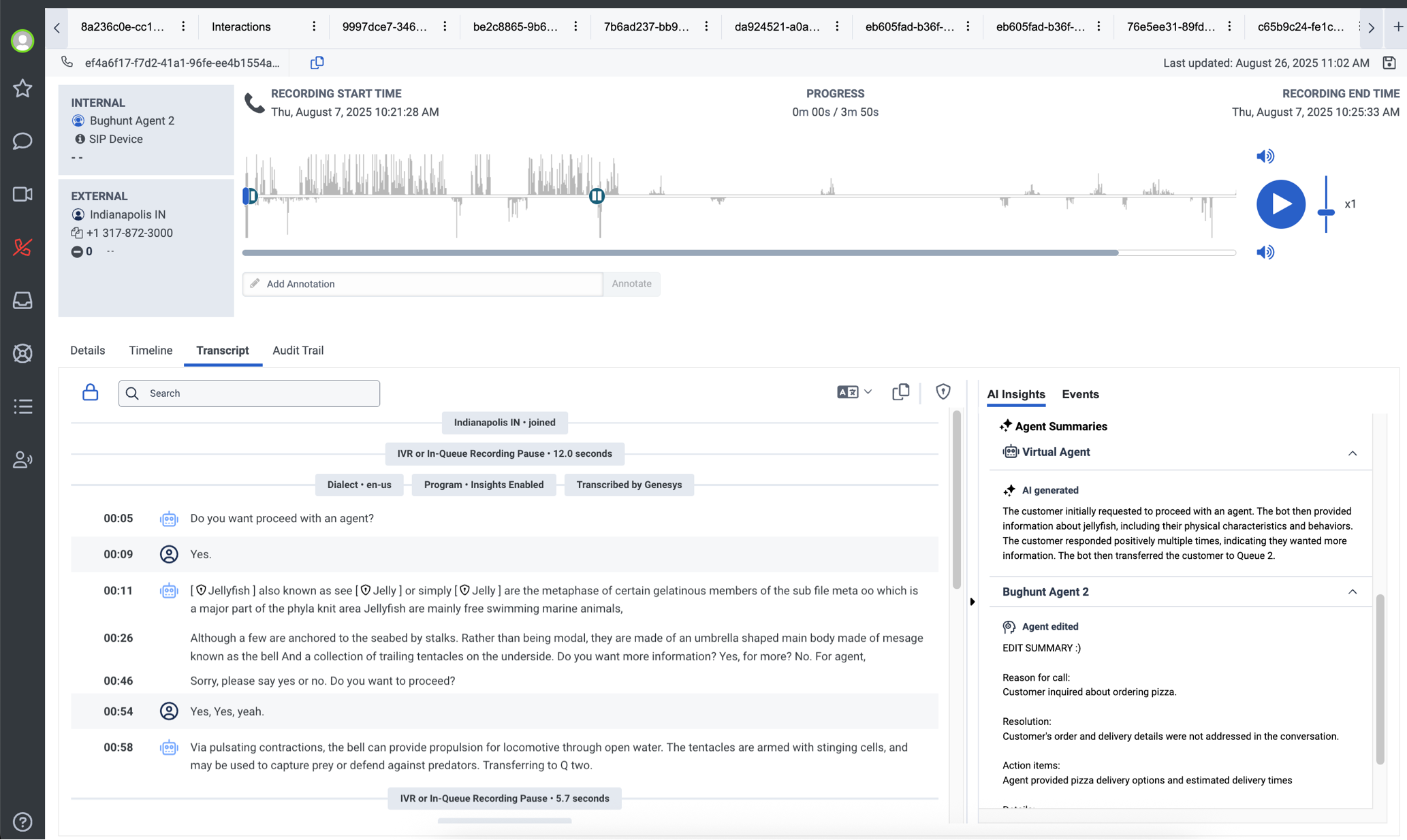 - Cliquez sur l'onglet Transcript et sélectionnez une interaction.